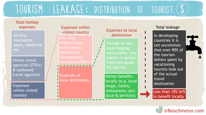 United Nations Environment Programme research records that for every $100.00 spent by a tourist on holiday in a developing country, only $5.00 remains in the host community.